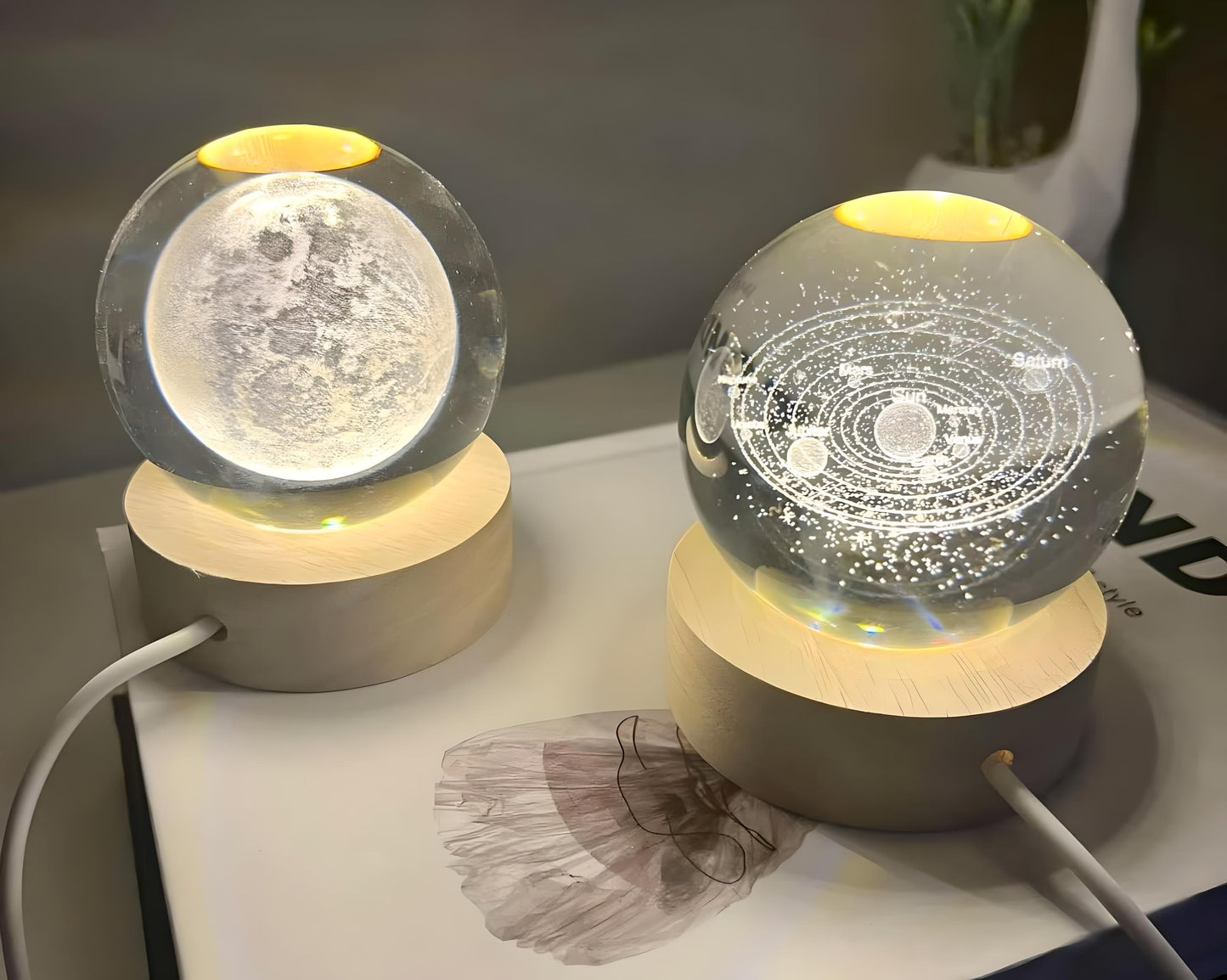 These are fantastic crystal ball lights that have an engraved 3D printed image that illuminate when the light underneath is switched on. They are powered by USB a simple way of powering and come with a wooden base that fit the crystal ball perfectly. These Crystal ball lights bring the galaxy into your own home. Created using 3D printing technology and make unique gifts for birthday, anniversaries or special occasions.