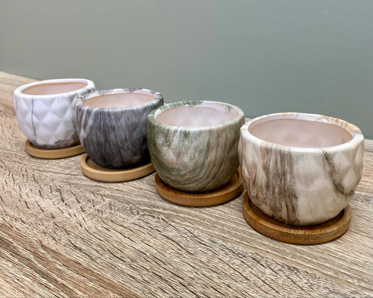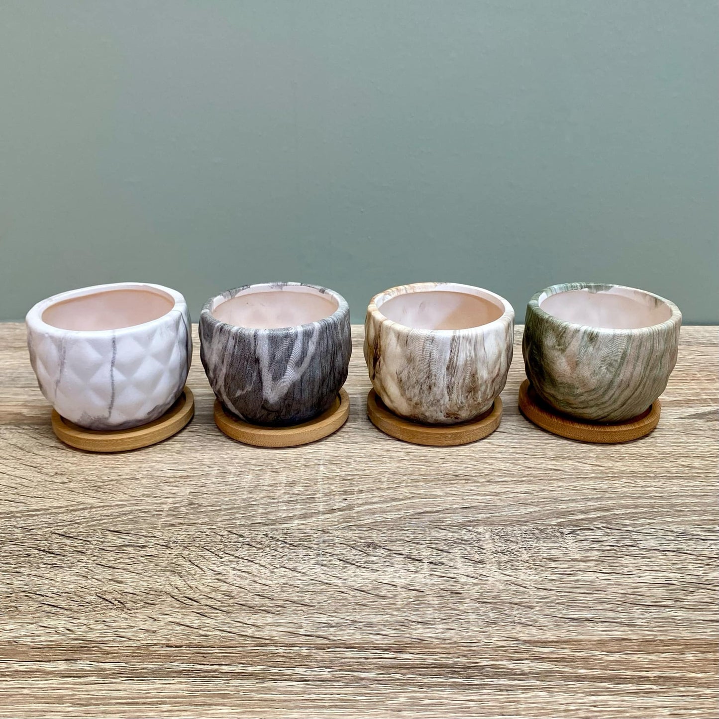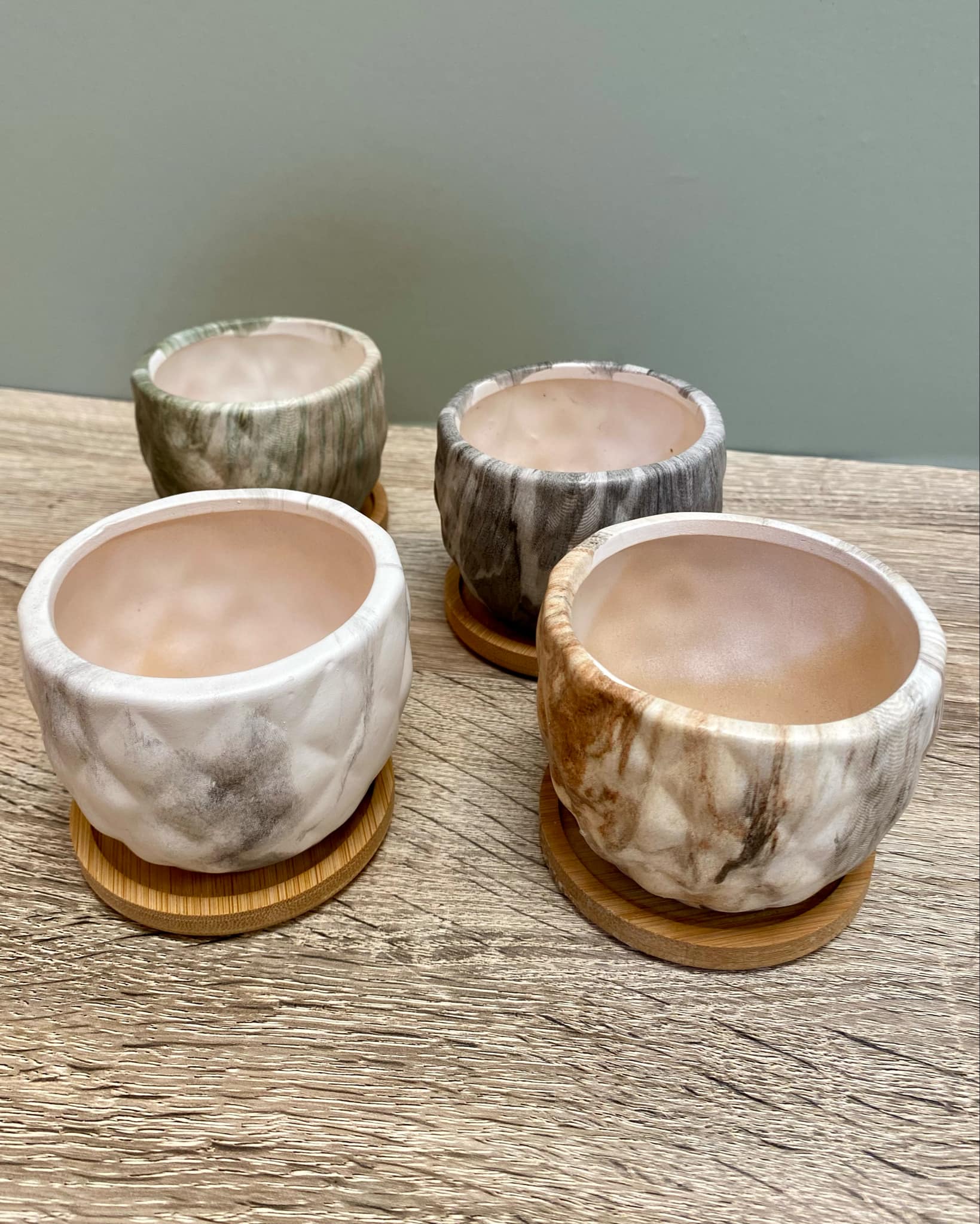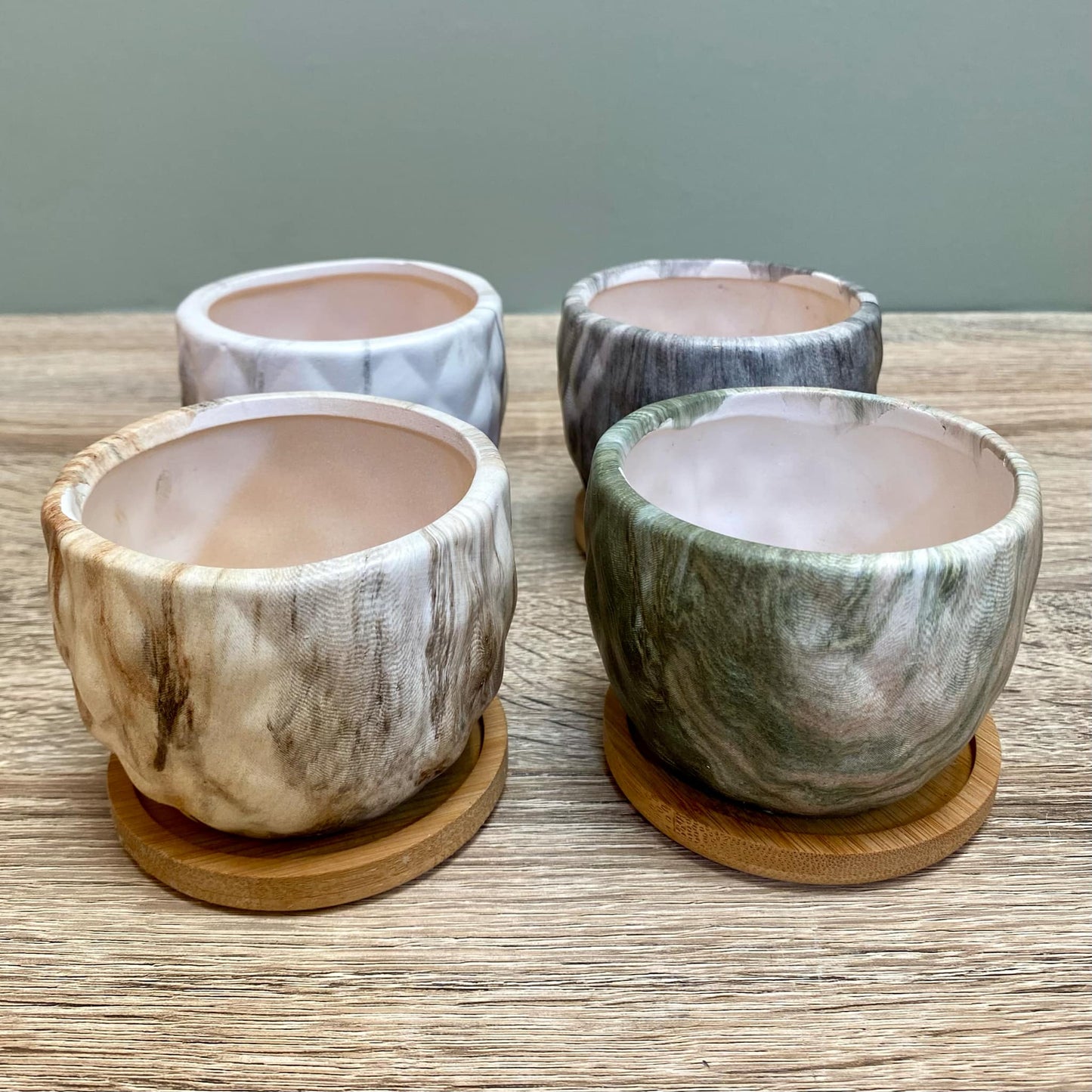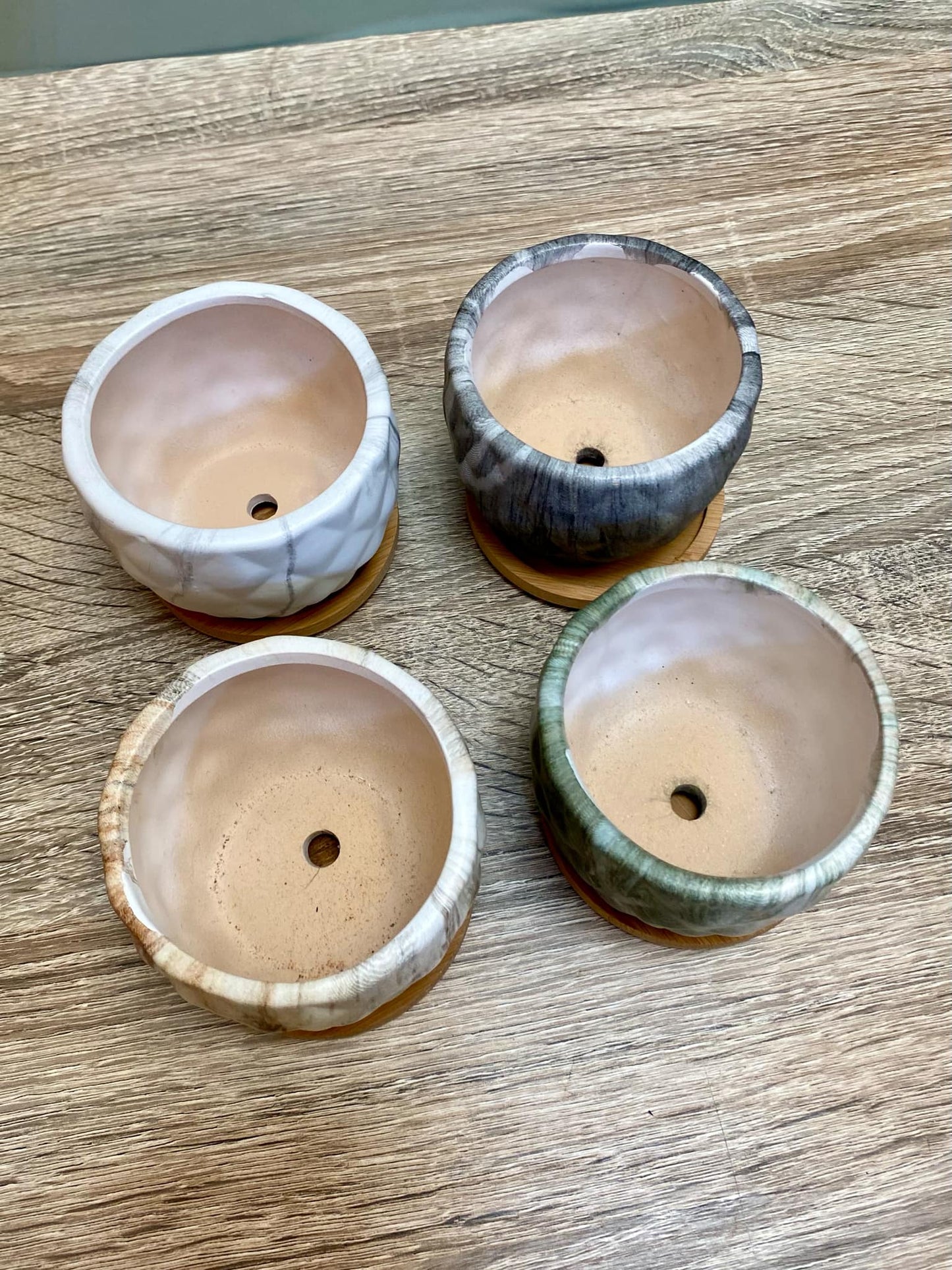 • Each plant pot comes with a bamboo tray to hold any water.