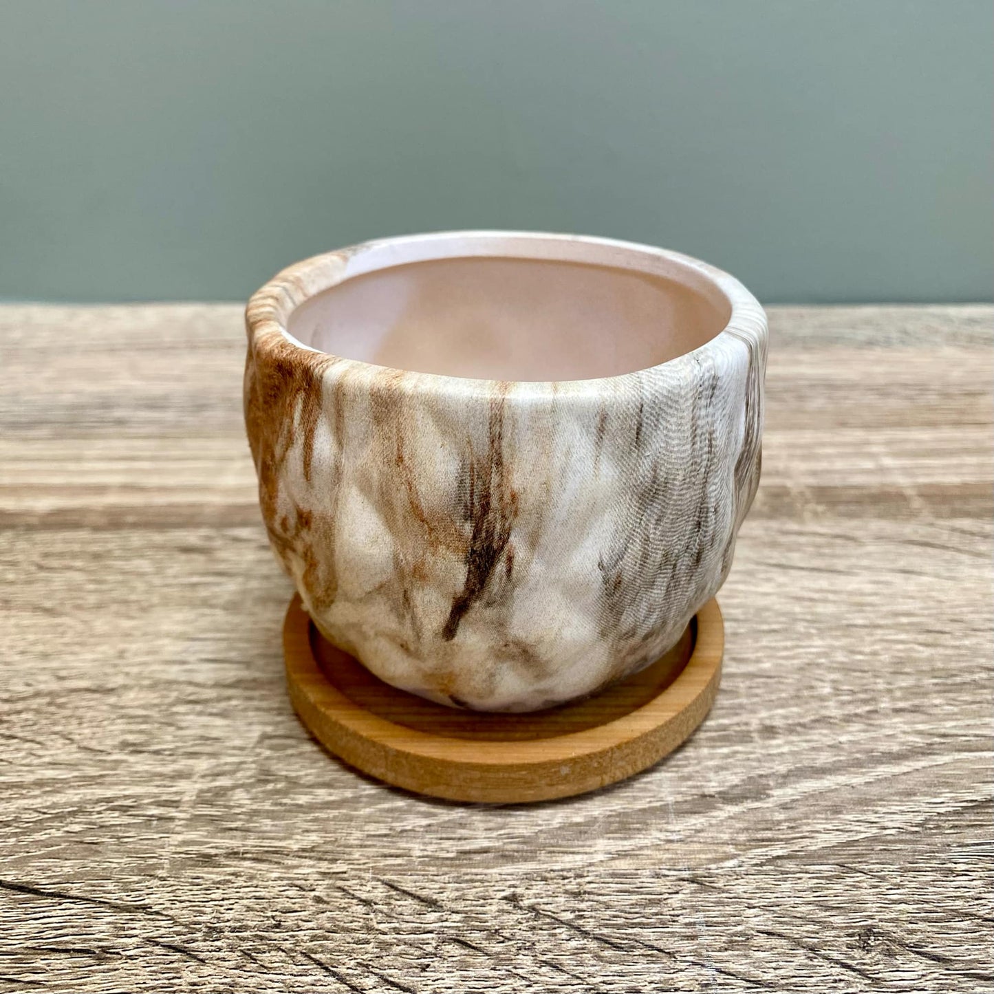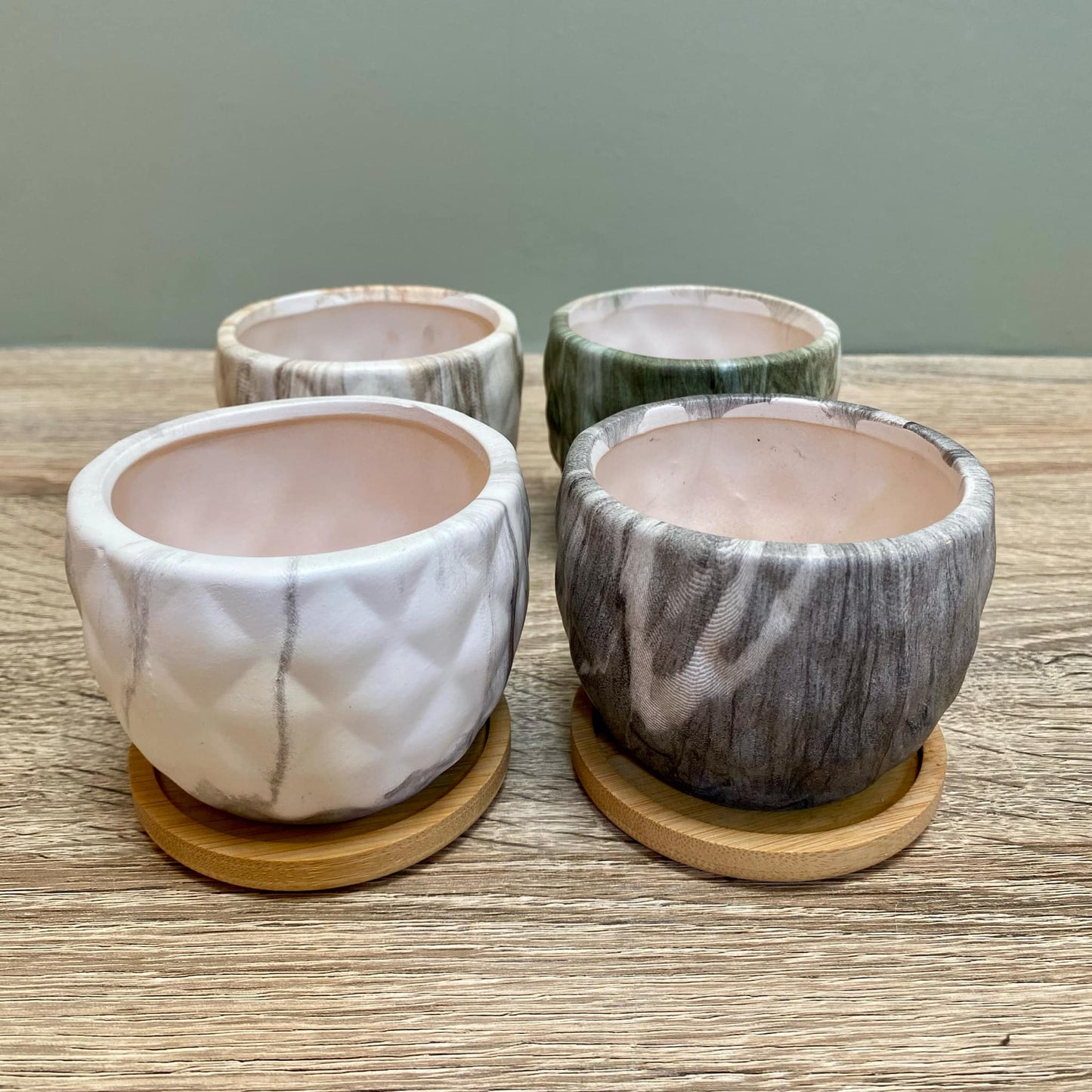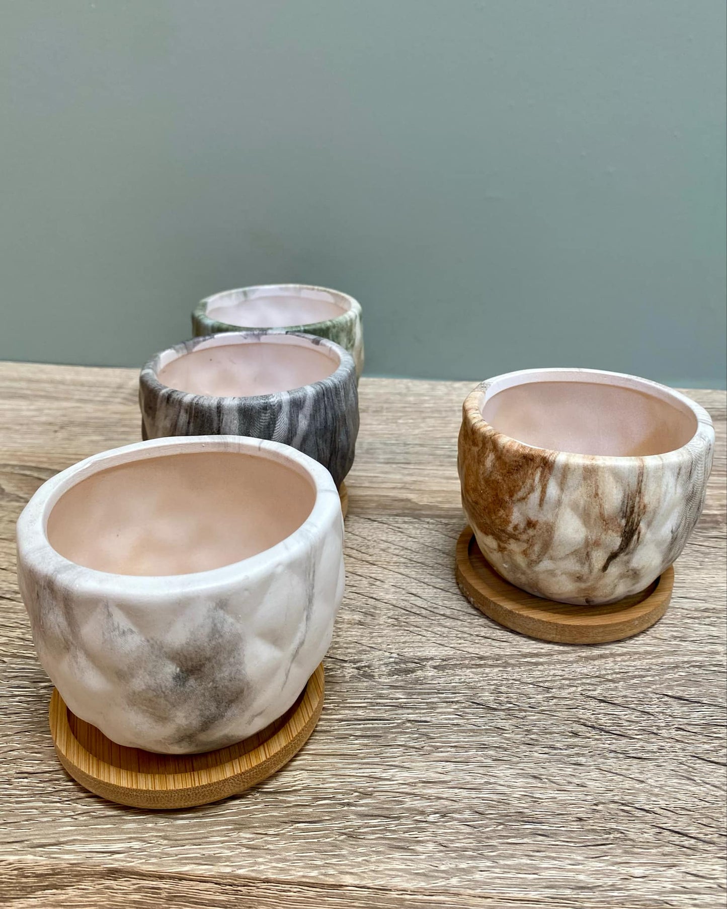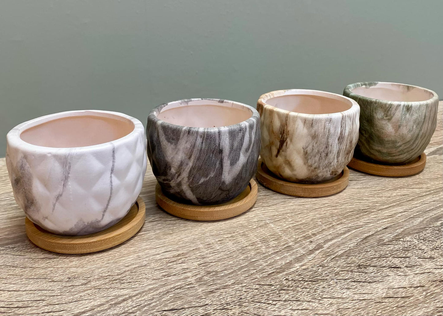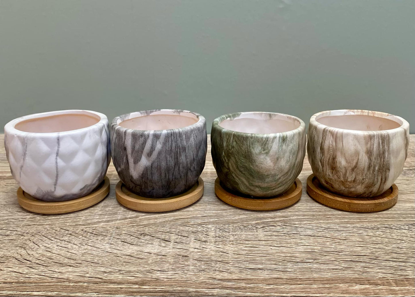 • Each plant pot comes with a bamboo tray to hold any water.